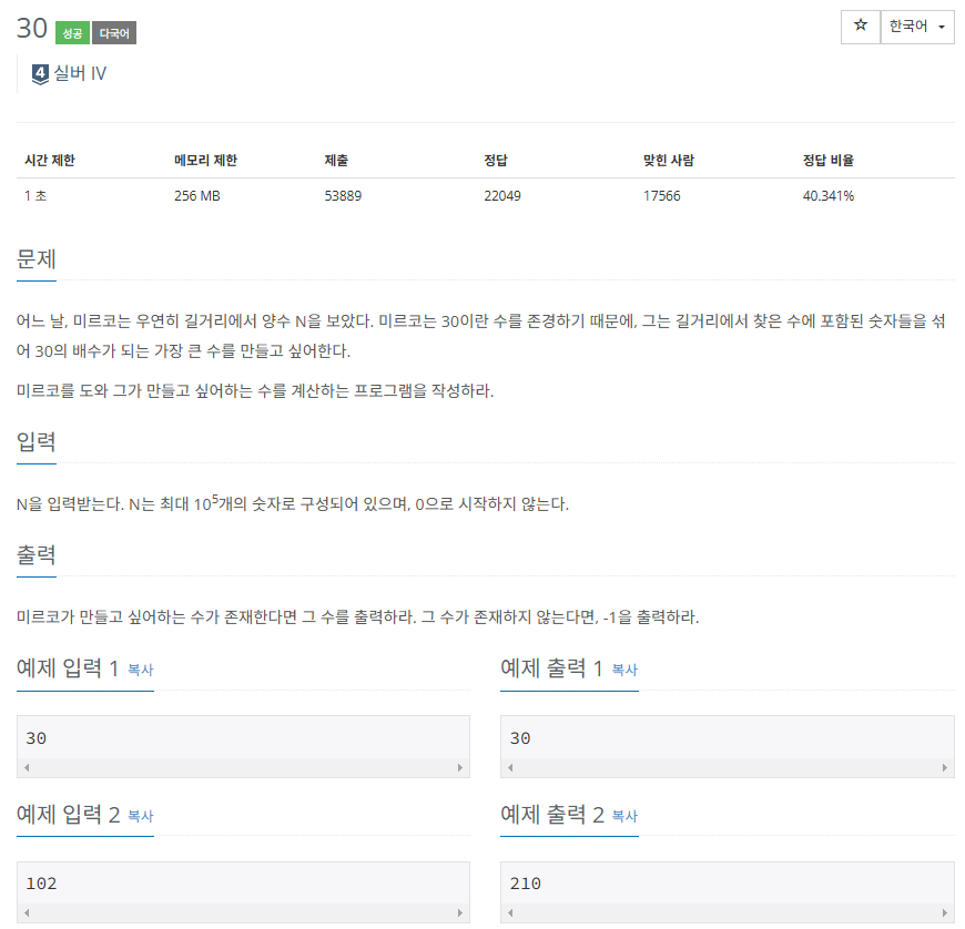 2) 아니 어차피 3의 배수이고 30의 배수면 그냥 내림차순 정렬하면 제일 큰 수잖아?????