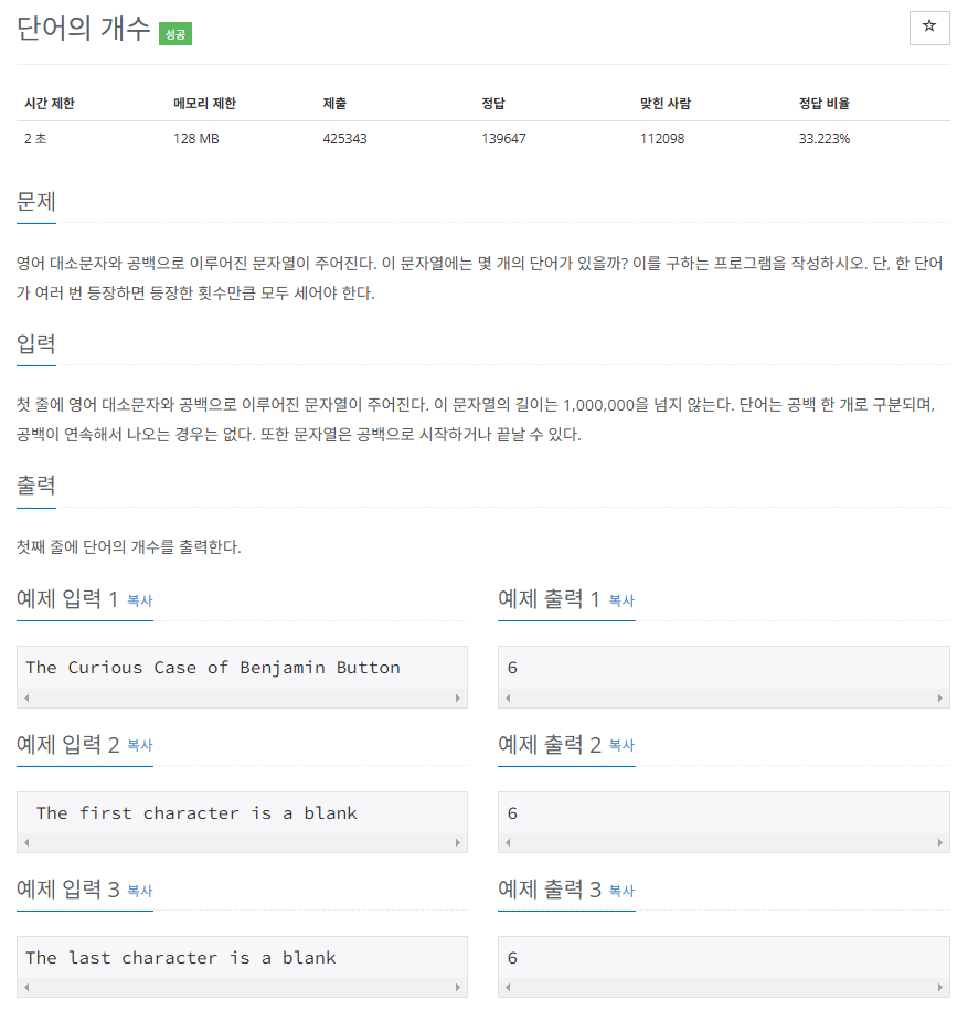 1) 영어 대소문자 + 공백으로 이루어진 문자열이 주어진다.