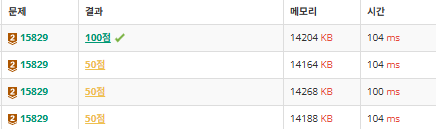 3) int로 계산했더니 부분성공했다. large L은 50 이하이므로, 전체 성공하려면 long타입으로 해야한다.