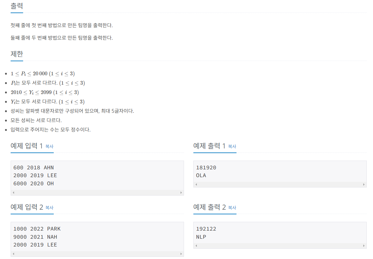1) [문제개수 + 입학연도 + 이름]으로 구성된 입력이 3번 주어진다.